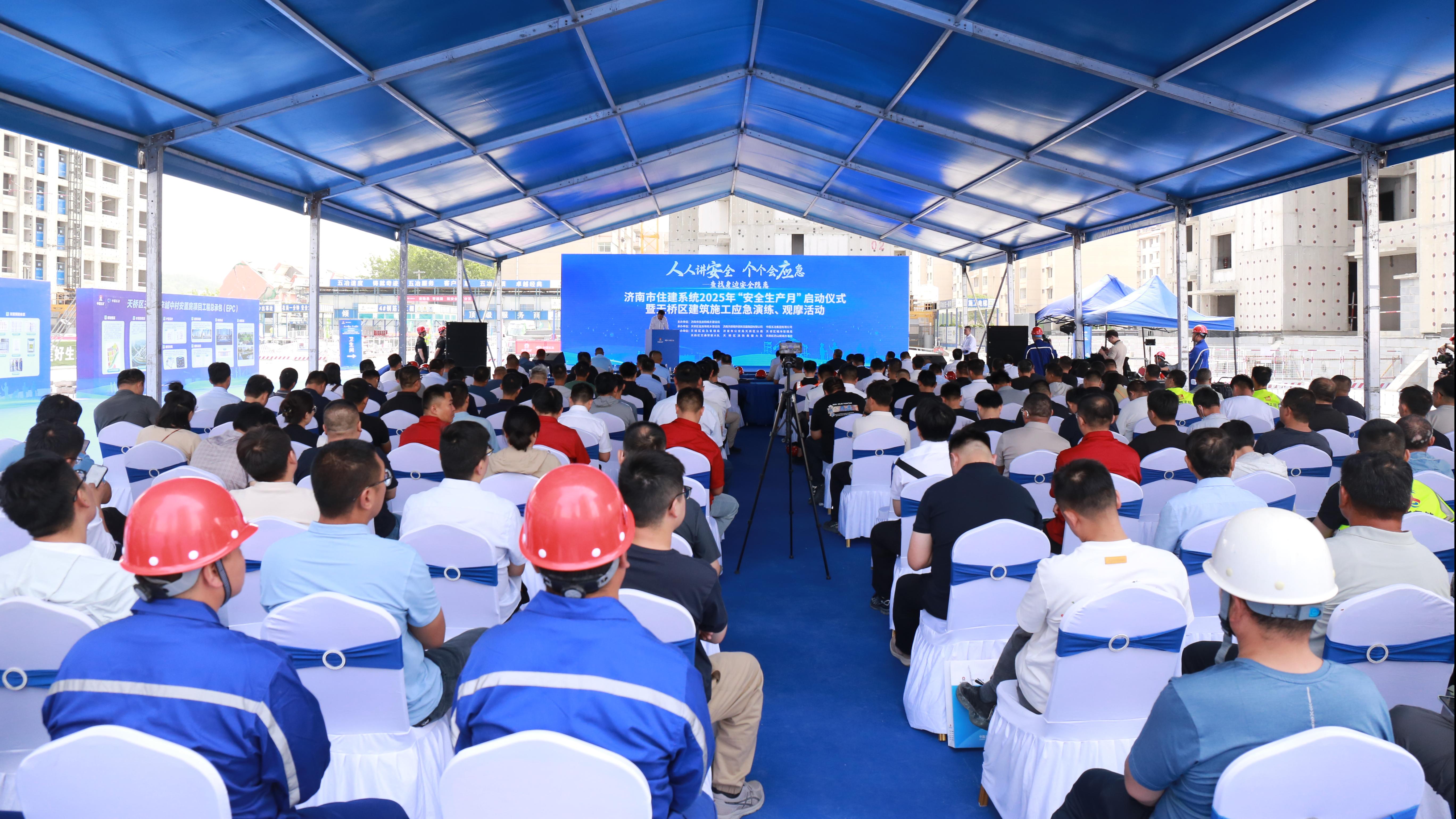 6月5日,公司聯(lián)合濟(jì)南市住房和城鄉(xiāng)建設(shè)局在濟(jì)南天橋王爐北辛城中村安置房項目現(xiàn)場舉行“安全生產(chǎn)月”活動啟動儀式。儀式現(xiàn)場,項目部宣讀了安全生產(chǎn)倡議書,參建各方在現(xiàn)場莊嚴(yán)宣誓,表達(dá)了落實安全生產(chǎn)責(zé)任的堅定決心?;顒又?,項目部開展了高空墜落應(yīng)急演練,進(jìn)一步提升了面對突發(fā)事件的應(yīng)急組織及處置能力。隨后,與會嘉賓深入項目現(xiàn)場,實地參觀了項目質(zhì)量安全展區(qū)、“科技賦能 創(chuàng)引未來”機(jī)器展示區(qū)、樣板間展示區(qū)、智慧工地展區(qū)、黨建引領(lǐng)展區(qū)、安全體驗區(qū)以及一站式工人服務(wù)區(qū),項目在打造全過程高品質(zhì)現(xiàn)場方面的扎實舉措和顯著成效,贏得了參觀人員的一致好評。